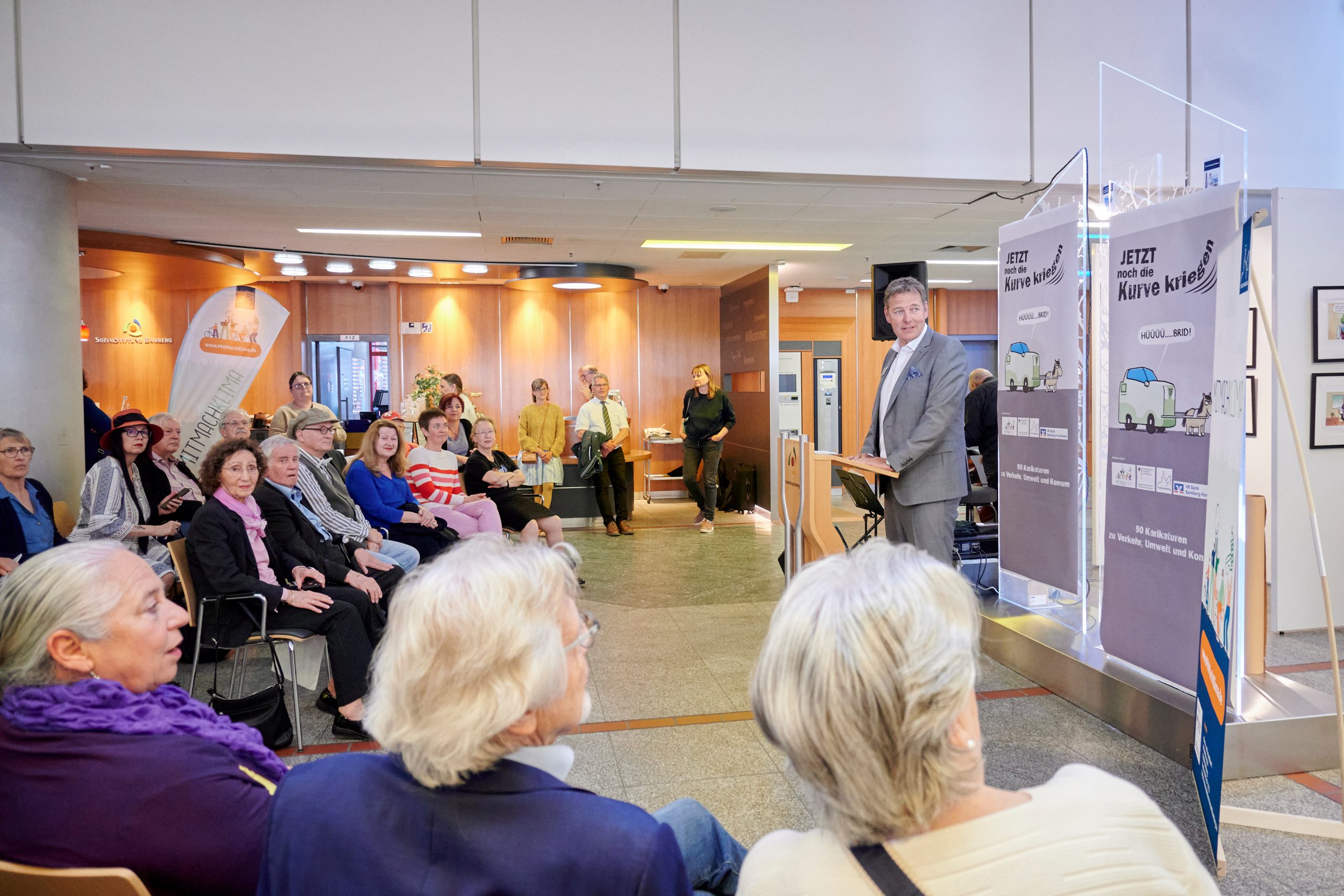 Die Eröffnung der Ausstellung am 13. Juni war ein besonderer Abend mit einem abwechslungsreichen Programm. Martin Wilde, Vorstandsvorsitzender der Sozialstiftung Bamberg, hieß die rund 80 Gäste herzlich willkommen und stellte den positiven Charakter von Karikaturen heraus. Er betonte, dass diese Kunstform Hoffnung und Optimismus wecken kann, die als Grundlage für Veränderung in den Menschen dienen.