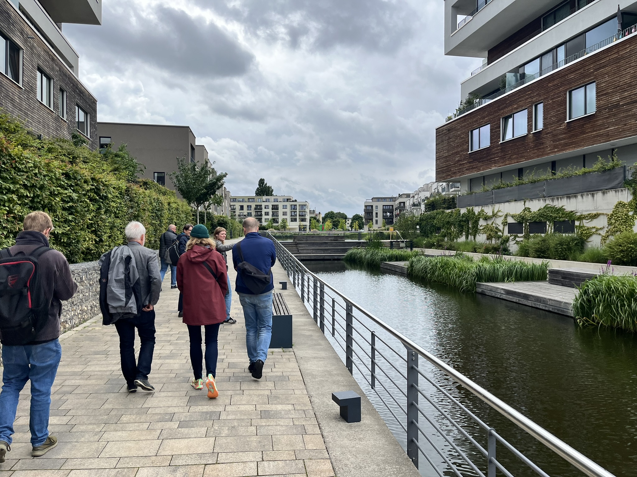 Am Donnerstag, den 05. Juli, startete die Gruppe ihre Reise von Bamberg nach Berlin. Nach der Ankunft stand zunächst eine Erkundung des geschichtsträchtigen Berlin-Köpenick auf dem Programm, bevor das Wohnbauprojekt „52 Grad Nord Quartier“ besichtigt wurde. Dieses Gelände „52 Grad Nord Quartier“, auf dem früher ein Chemieunternehmen tätig war, wurde aufwendig saniert. Die Boden- und Grundwasserreinigung dauerte mehrere Jahre und kostete etwa 30 Millionen Euro. Insgesamt mussten rund 2,50 Meter des Bodens abgetragen werden. Seit 2016 wird das Gelände von der BUWOG bebaut, und ein Großteil des Areals ist bereits fertiggestellt und bewohnt. Heute gibt es dort 1.000 Wohnungen mit etwa 2.000 Einwohnern.